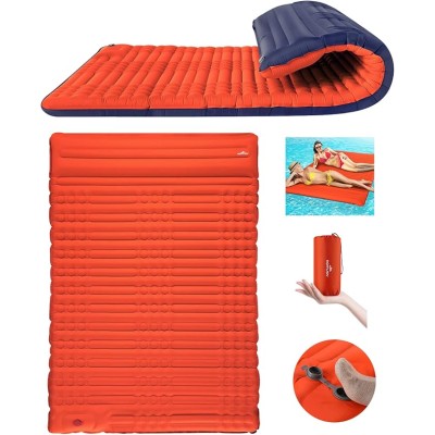 Double Sleeping Pad for Camping, Self Inflating 4" Extra Thick Camping Sleeping Pad for 2 Person with Pillow, Built-in Foot
