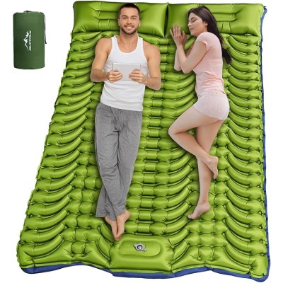 Double Sleeping Pad for Camping, Ultralight Camping Mattress with Pillow, Built-in Foot Pump, Thick Self-Inflatable 2-Person