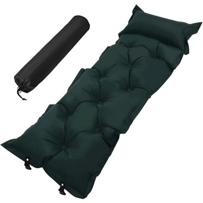 Ergonomic Camping Sleeping Pad Self Inflating Air Mattress Pillow Lightweight Portable 185x60x2.5cm Olive Green for Outdoor
