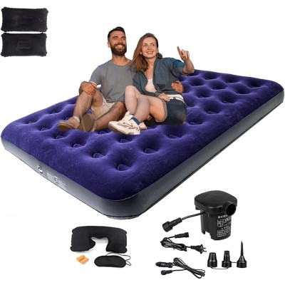 Queen Size Double Camping Air Mattress Bed with Air Pump,Inflatable Mattress,80"x 60"Thickened Portable Blow Up Air