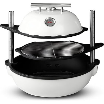 Bola Grill Master | Completely Adjustable & Rotatable Tabletop-Safe Charcoal BBQ Grill (Sea Salt White)