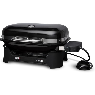 Lumin Compact Outdoor Electric Barbecue Grill, Black - Great Small Spaces such as Patios, Balconies, and Decks, Portable and