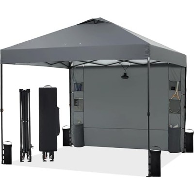 10'x10' Pop Up Canopy Tent with Sidewall and Pockets, Patented One Push, 1-Person Easy Setup, Instant Shade Canopy with Vented