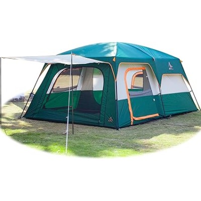 Extra Large Tent 10-12-14 Person(Style-B),Family Cabin Tents,2 Rooms,3 Doors and 3 Windows with Mesh,Straight