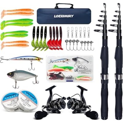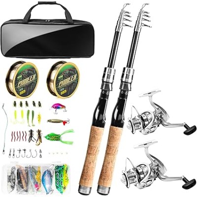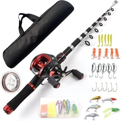 Fishing Rod and Reel Combo, Carbon Fiber Telescopic Fishing Rod Kit with Spinning Reel, Carrier Bag, Fishing Lures and Fishing