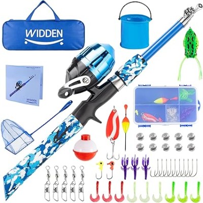 Kids Fishing Pole - Portable Telescopic Fishing Rod and Reel Combo Kit - Spincast Fishing Reel Casting Rods with Lures Lines