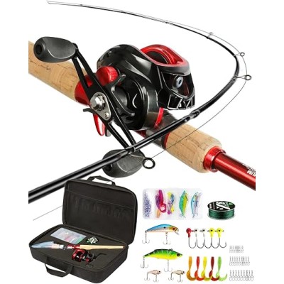 Fishing Rod and Reel Combo with Fishing Lures for Adult, 6.89ft/2.1m Telescopic Fishing Rod with Baitcasting Reel 18+1BB