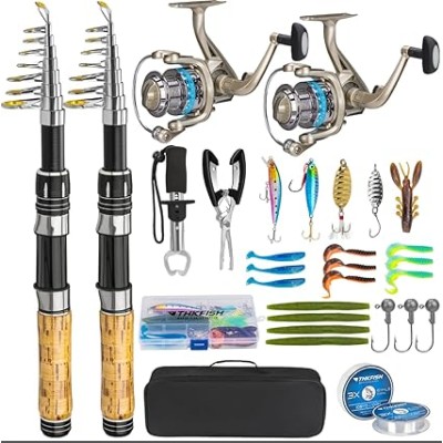 Fishing Rod Reel Combos Collapsible Fishing Rod Kit, 2PCS Telescopic Fishing Pole+2PCS Spinning Reels+Lures Hooks+Tackle