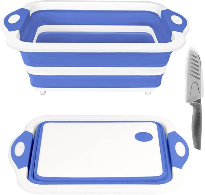Collapsible Cutting Board, Foldable Chopping Board with Colander, Multifunctional Kitchen Vegetable Washing Basket Silicone Dish
