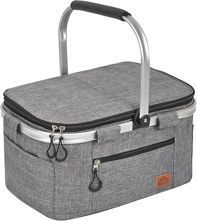 Insulated Picnic Basket Cooler Bag with Leak-Proof Liner, 26L Large Capacity for 12 Adults, Picnic Basket with Sturdy Handles
