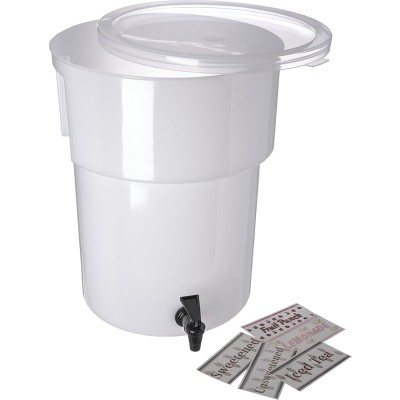 Round Beverage Dispenser Drink Dispenser with Spigot for Catering, Plastic, 5 Gallons, White