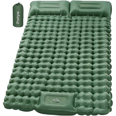 Double Sleeping Pad for Camping, Self Inflating 4" Extra Thick Camping Sleeping Pad for 2 Person with Pillow, Built-in Foot