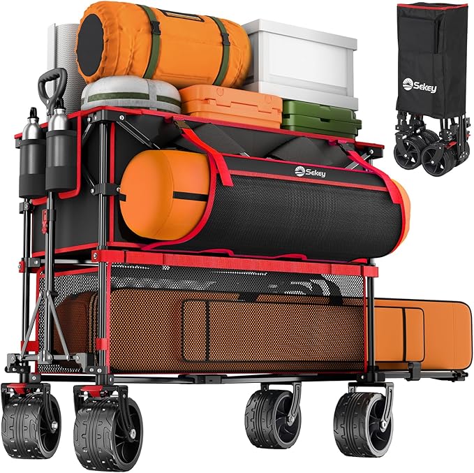 Beach Wagon,Collapsible Wagon 220lbs with Big Wheels Foldable Wagon Carts,Portable Utility for Garden Grocery Sports Camping All