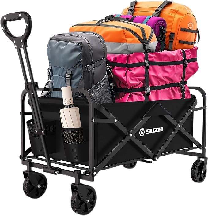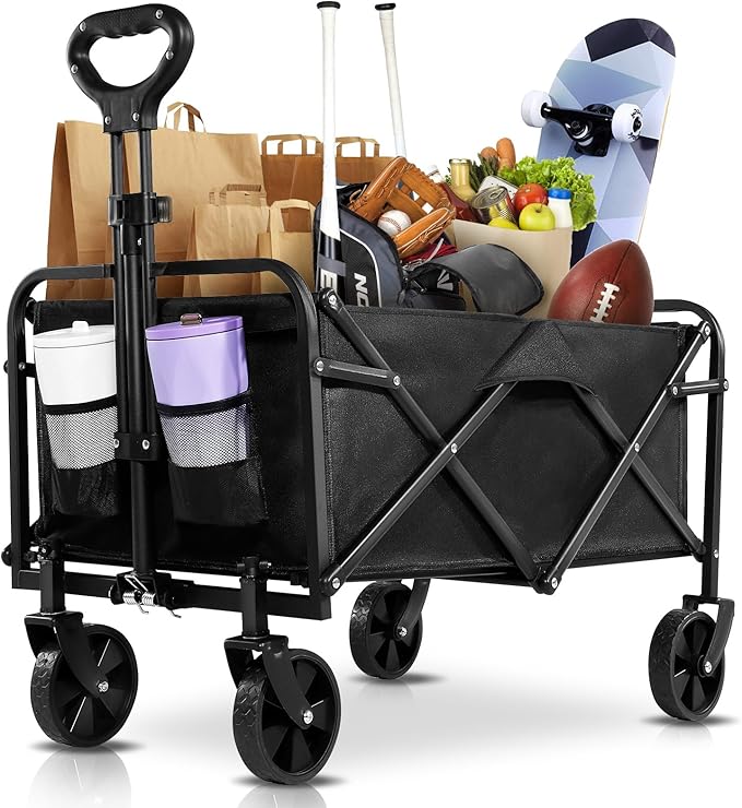 Small Foldable Wagon,Wagon carts with Wheels for Groceries, Black Wagon Carts, Apartment Wagon, Garden Wagon, Grocery Wagon,