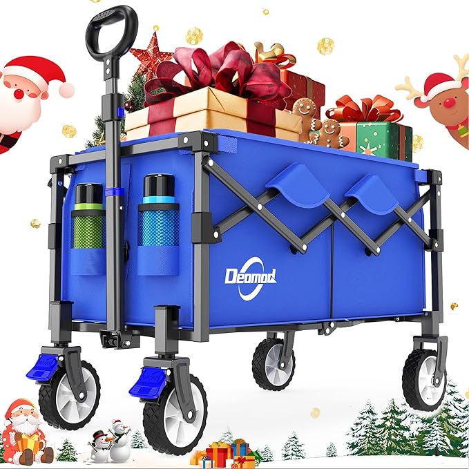 Rolling Collapsible Garden Cart Camping Wagon, with 360 Degree Swivel Wheels & Adjustable Handle, 220lbs Weight Capacity,Blue
