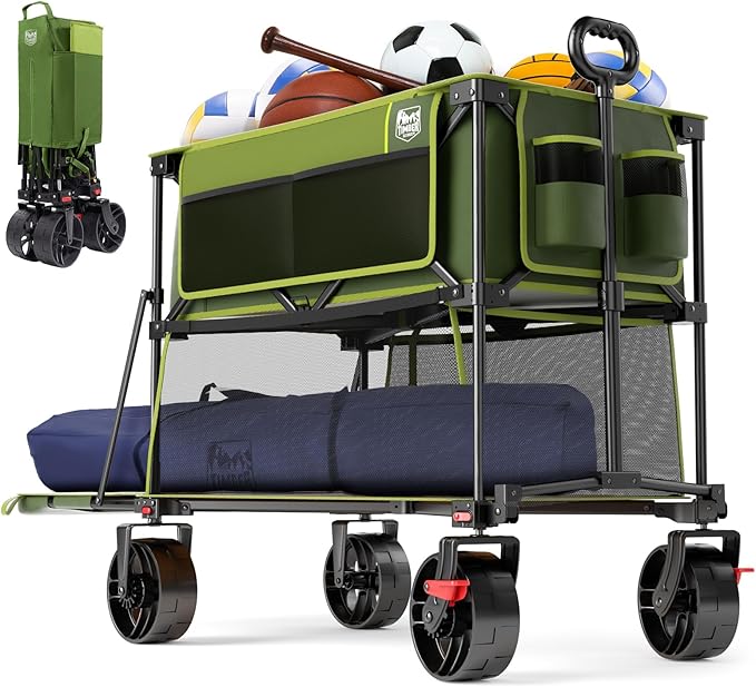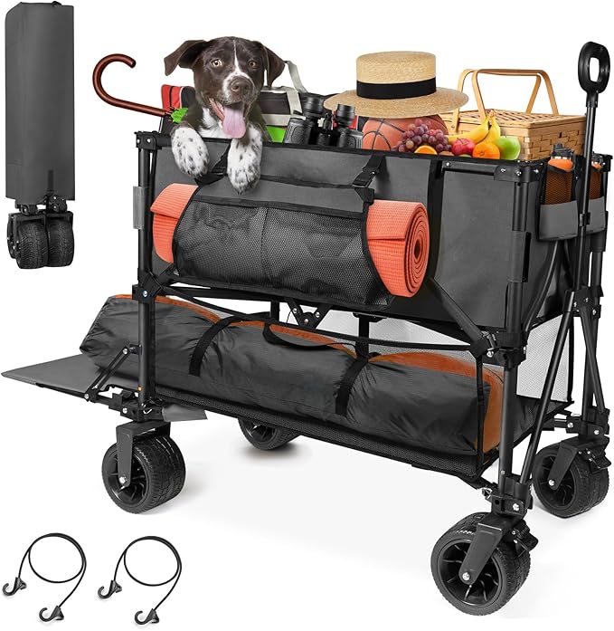 400L Double Decker Wagon Cart with Wheels Foldable, 54" Extra Long Collapsible Wagon, 550LBS Load Heavy Duty Wagons Carts, Beach