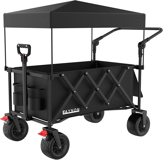 150L Foldable Wagon with 300lbs Weight Capacity,Utility Wagons Carts Heavy Duty with Removable Canopy,with Big All-Terrain Beach