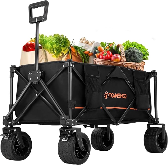 Collapsible Wagon, Folding Wagon Garden Cart Heavy Duty with Side Pocket and Terrain Wheels, Large Capacity Foldable Grocery